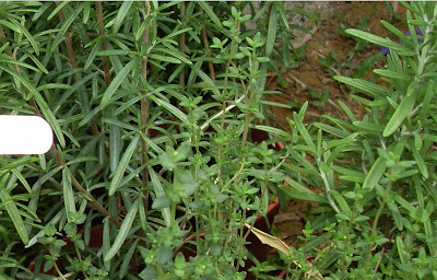 Thyme - Thymus vulgaris, is an aromatic herb that can be easily potted and placed on the kitchen sill/window ledge. It grows well in dry, sunny condition and lean soil because too much water can rot the plants. Can be grown from seed but growing from cuttings is much easier.